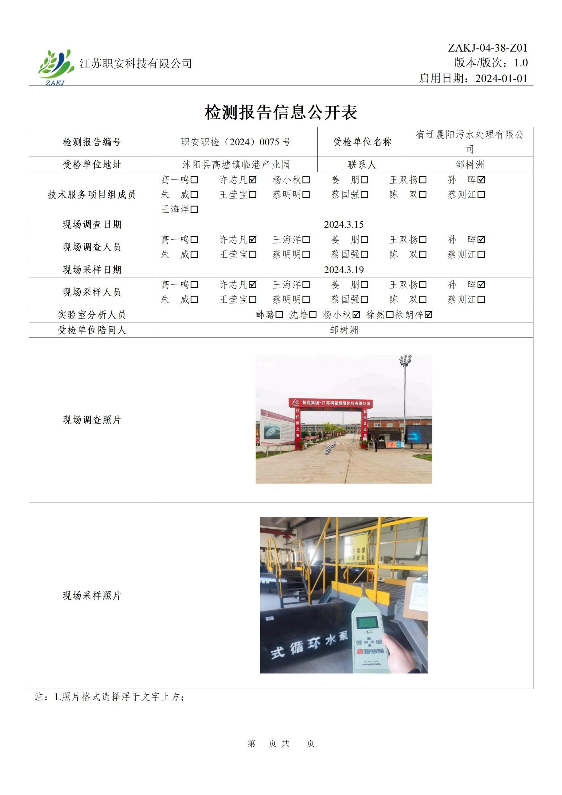檢測報告公示