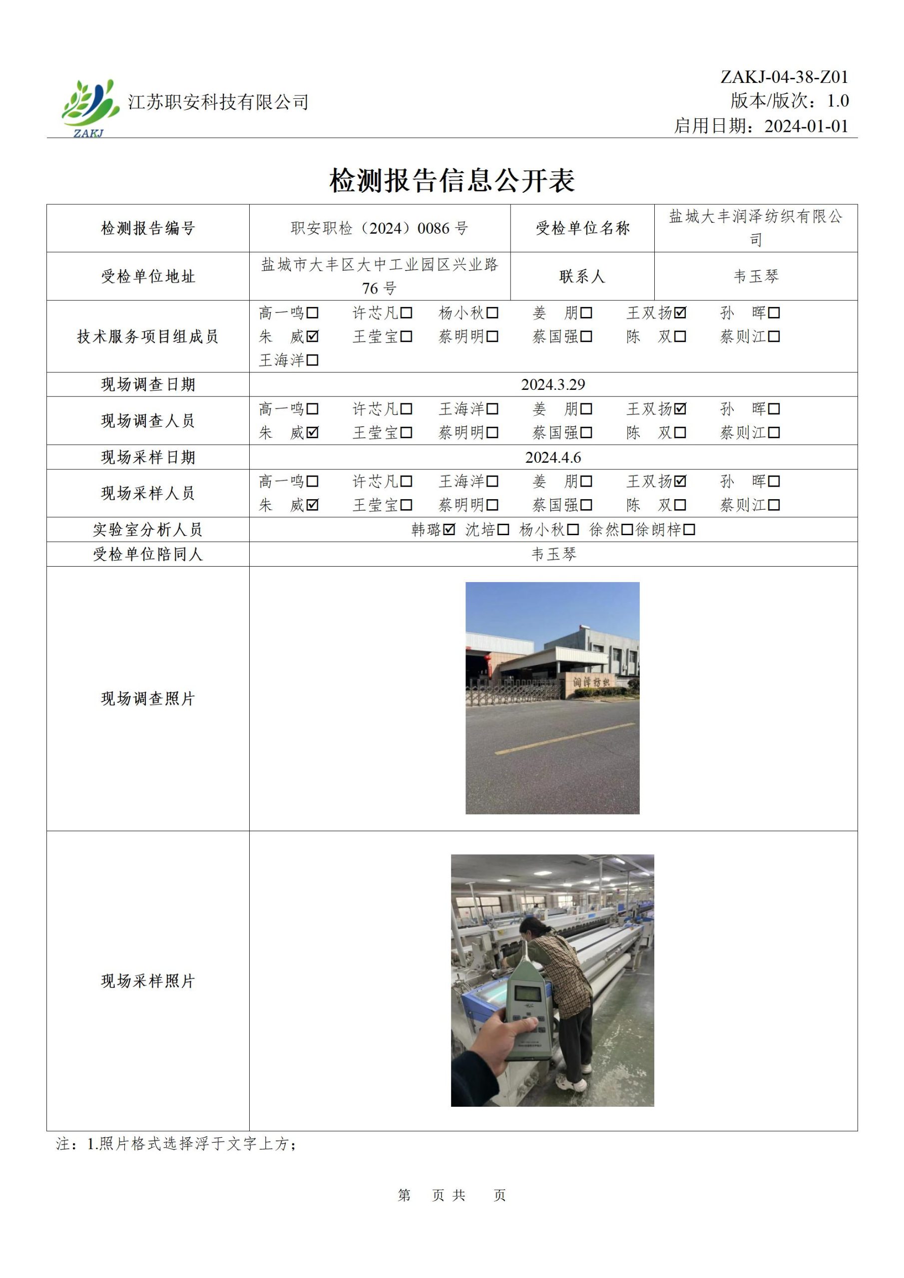 檢測報告公示