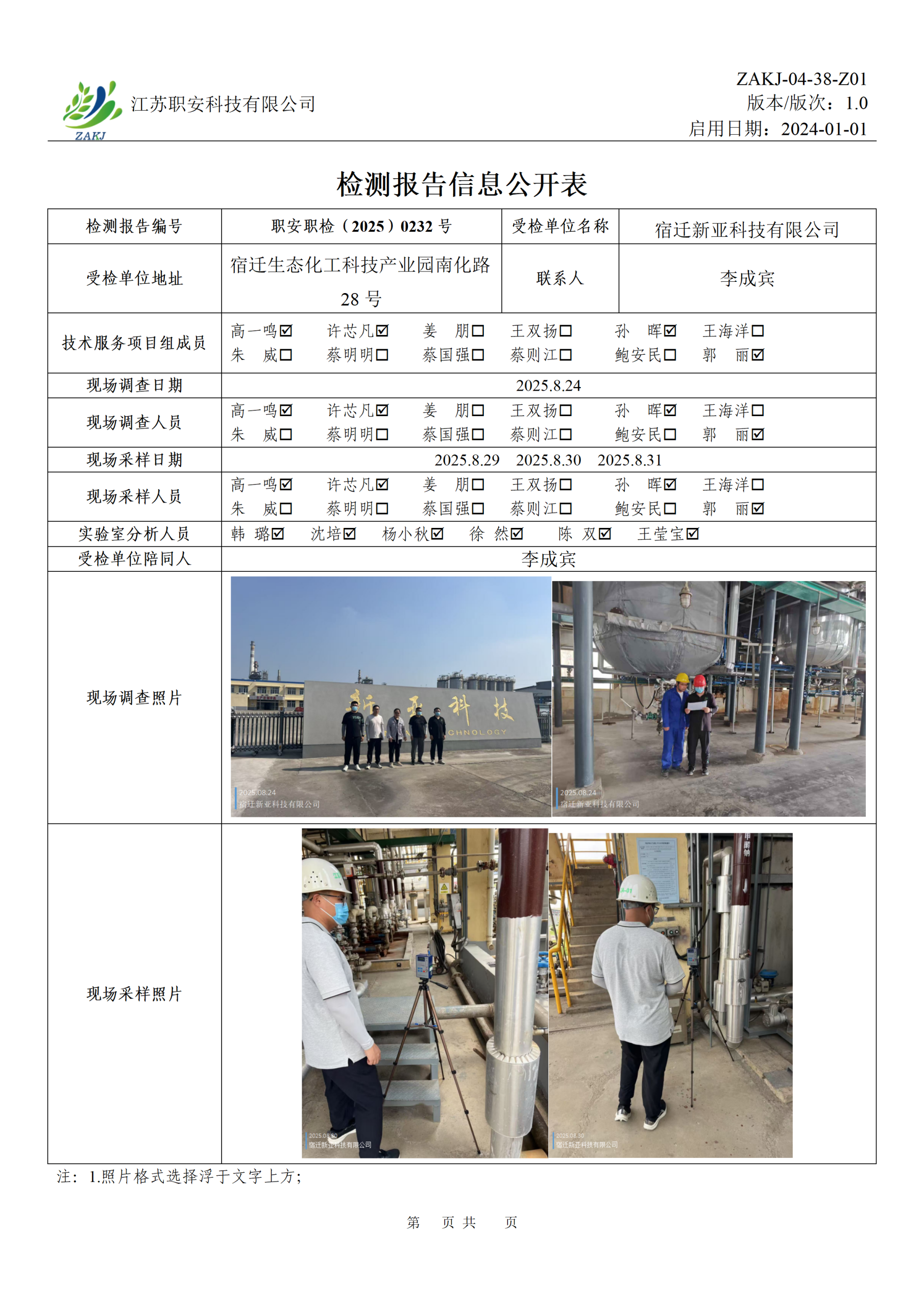 檢測報告公示