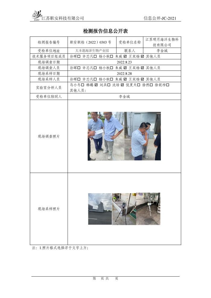 檢測報告公示