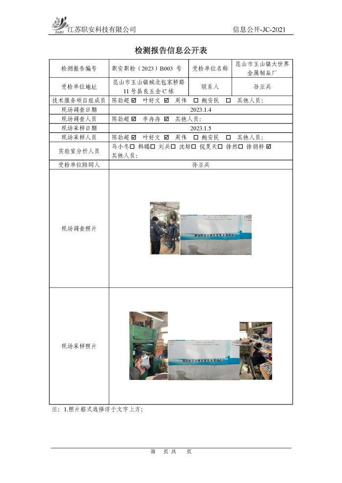 檢測報告公示