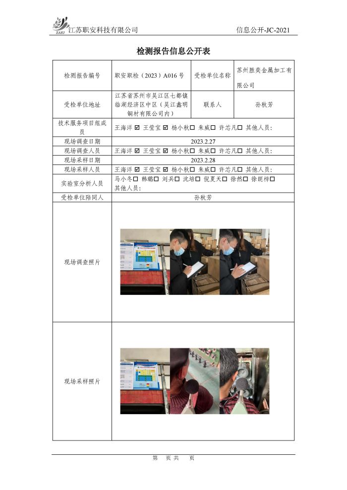 檢測報告公示