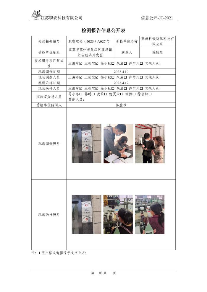 檢測報告公示