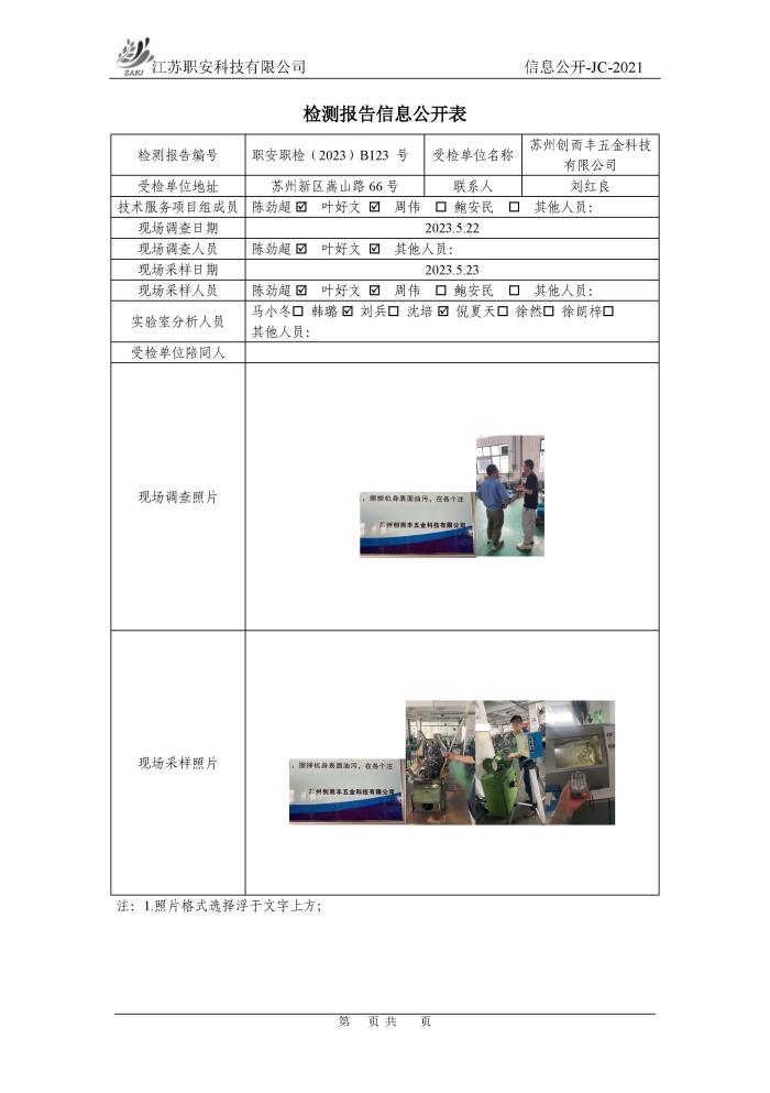 檢測報告公示
