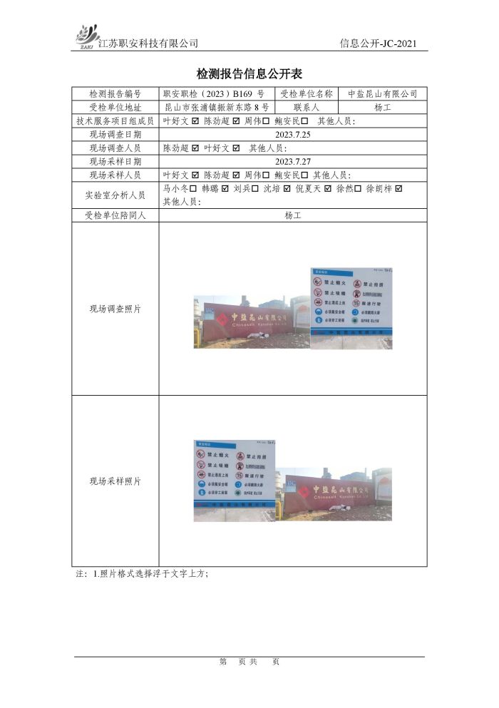 檢測報告公示