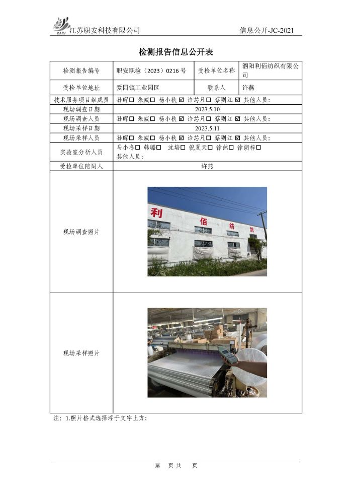 檢測報告公示