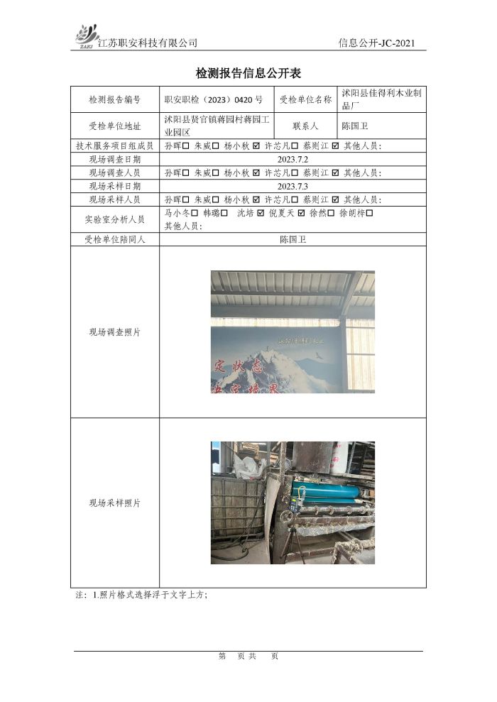 檢測報告公示