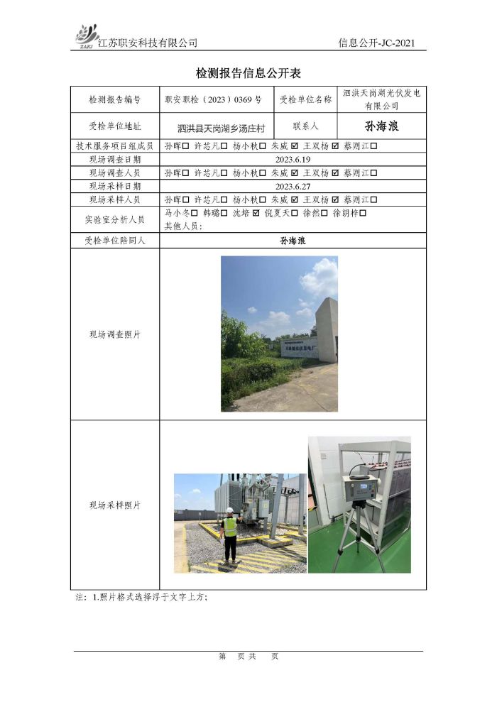 檢測報告公示