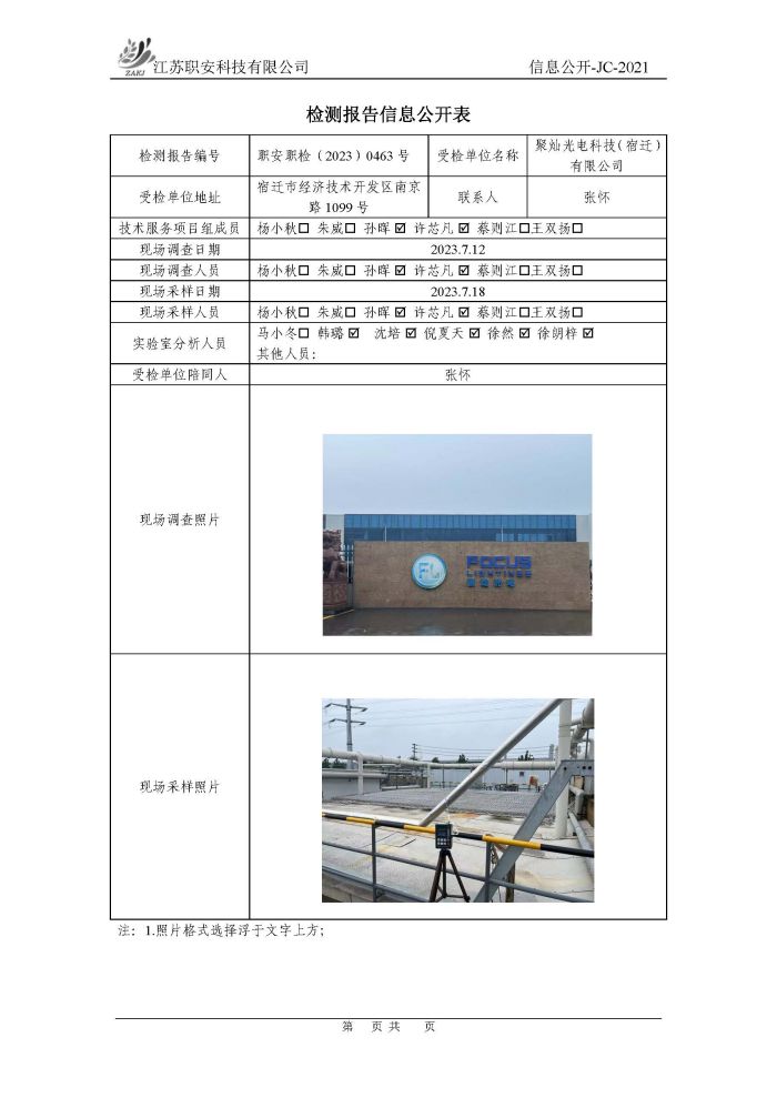 檢測報告公示
