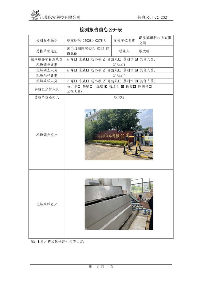 檢測報告公示