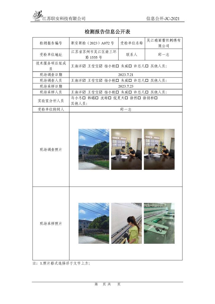 檢測報告公示