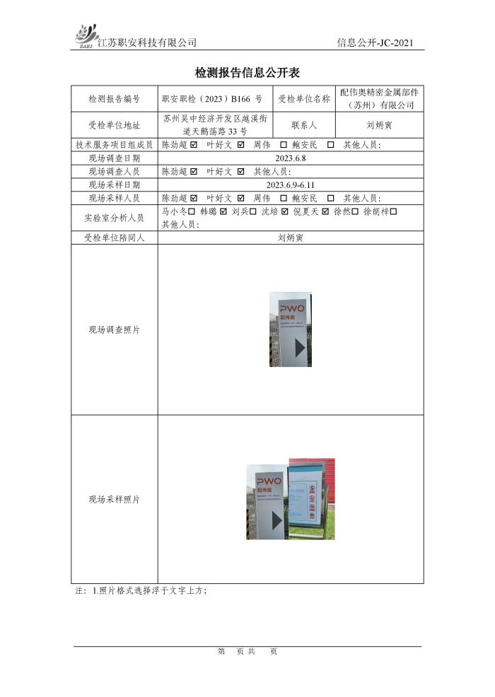 檢測報告公示