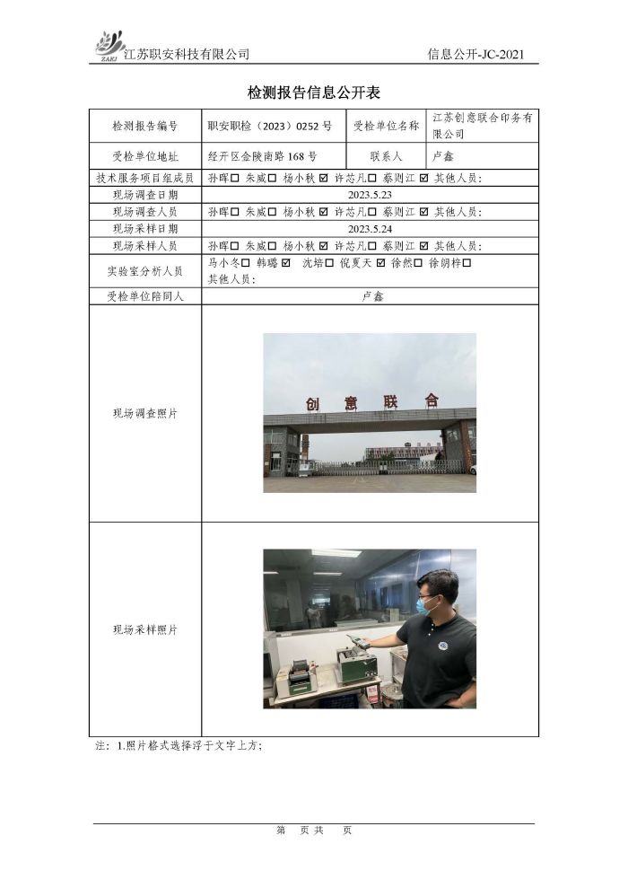 檢測報告公示