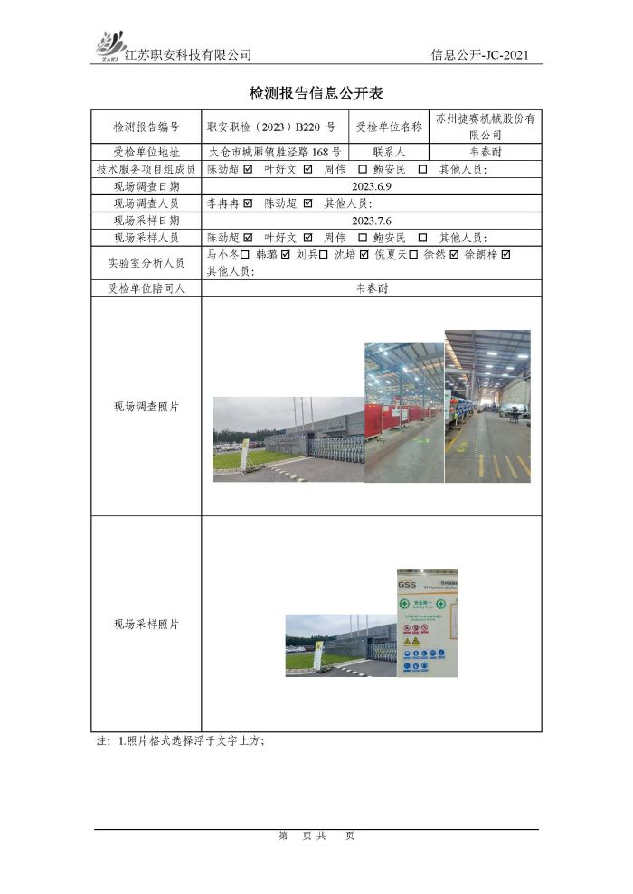 檢測報告公示