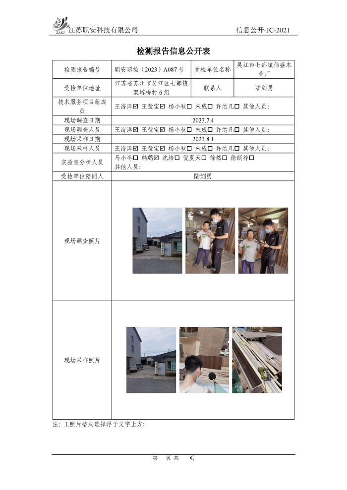 檢測報告公示