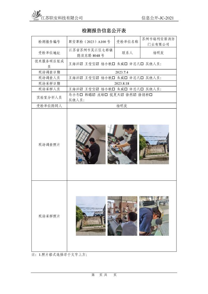 檢測報告公示