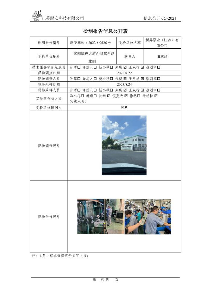 檢測報告公示