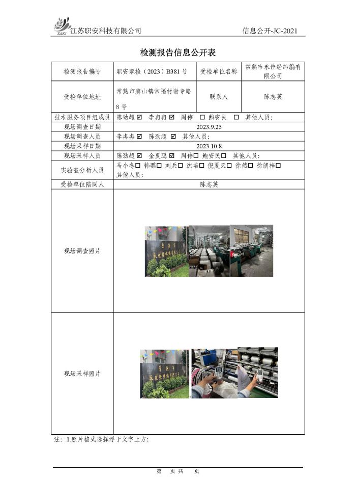 檢測報告公示