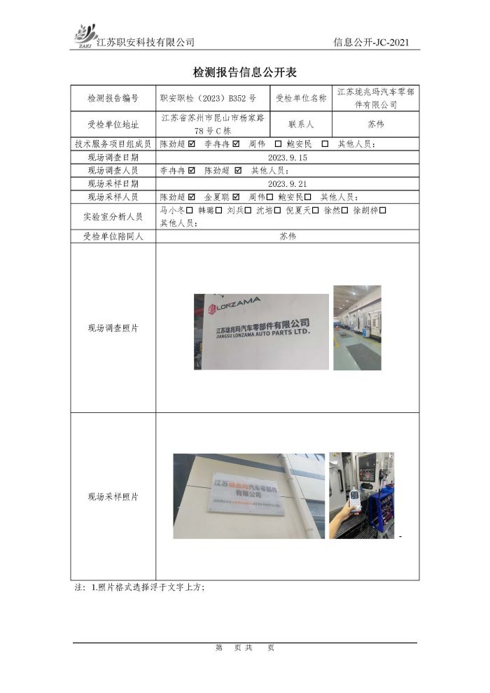檢測報告公示