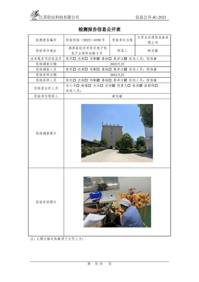 檢測報告公示
