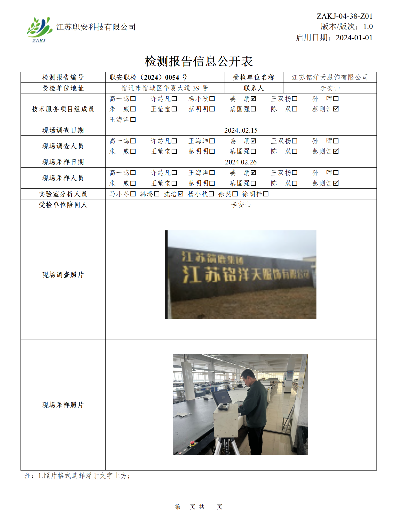檢測報告公示