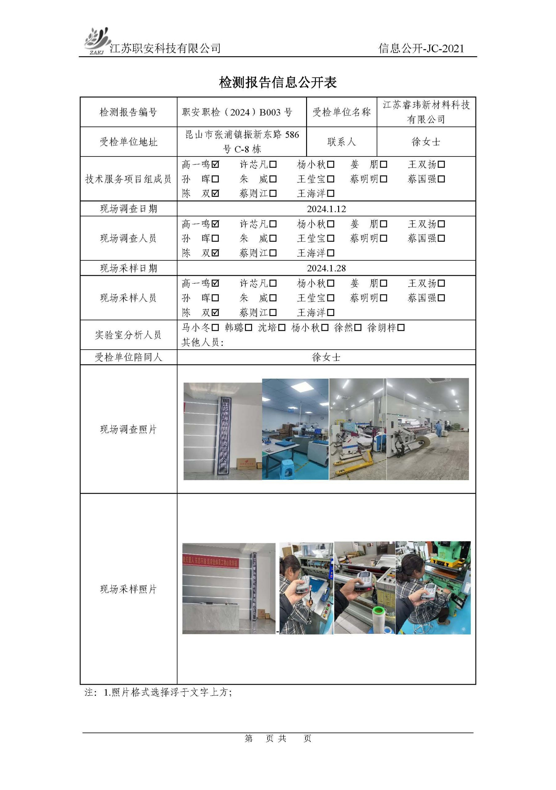 檢測報告公示