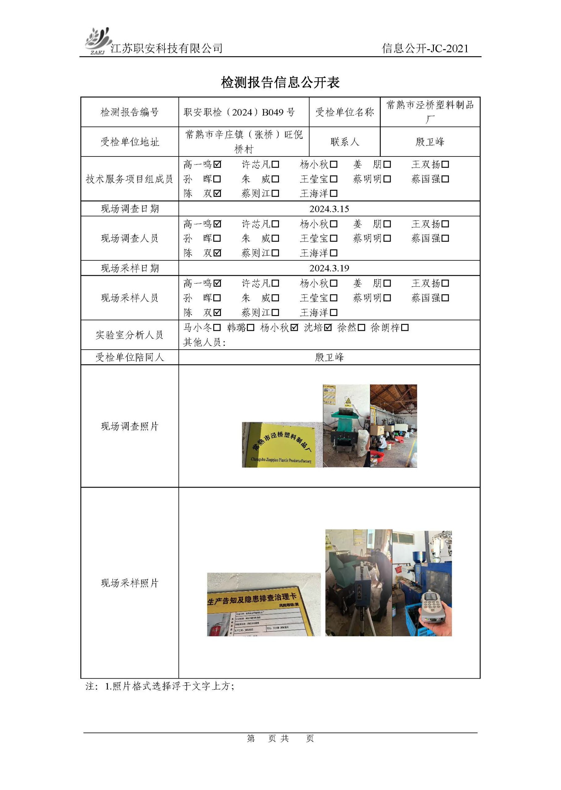 檢測報告公示