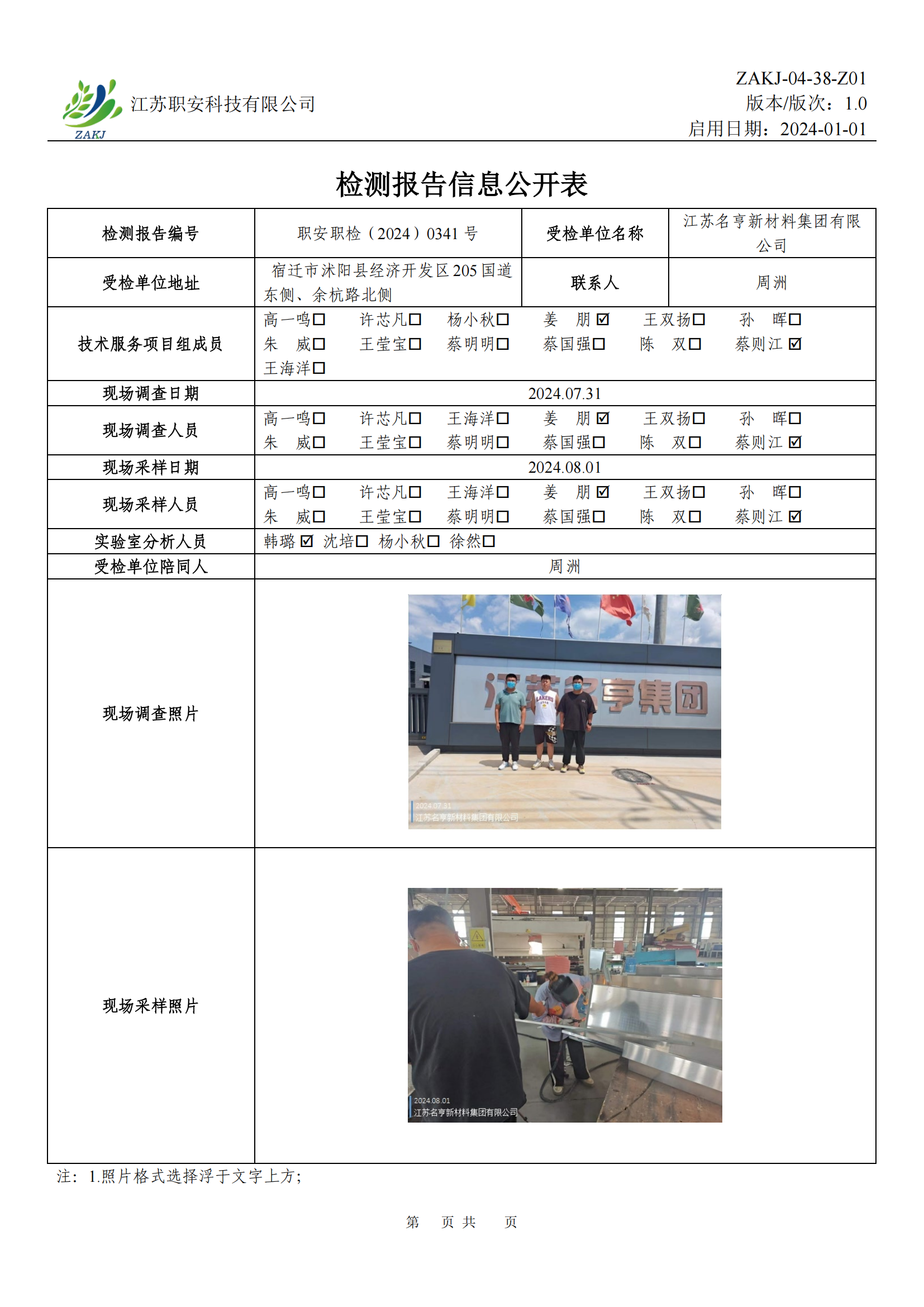檢測報告公示