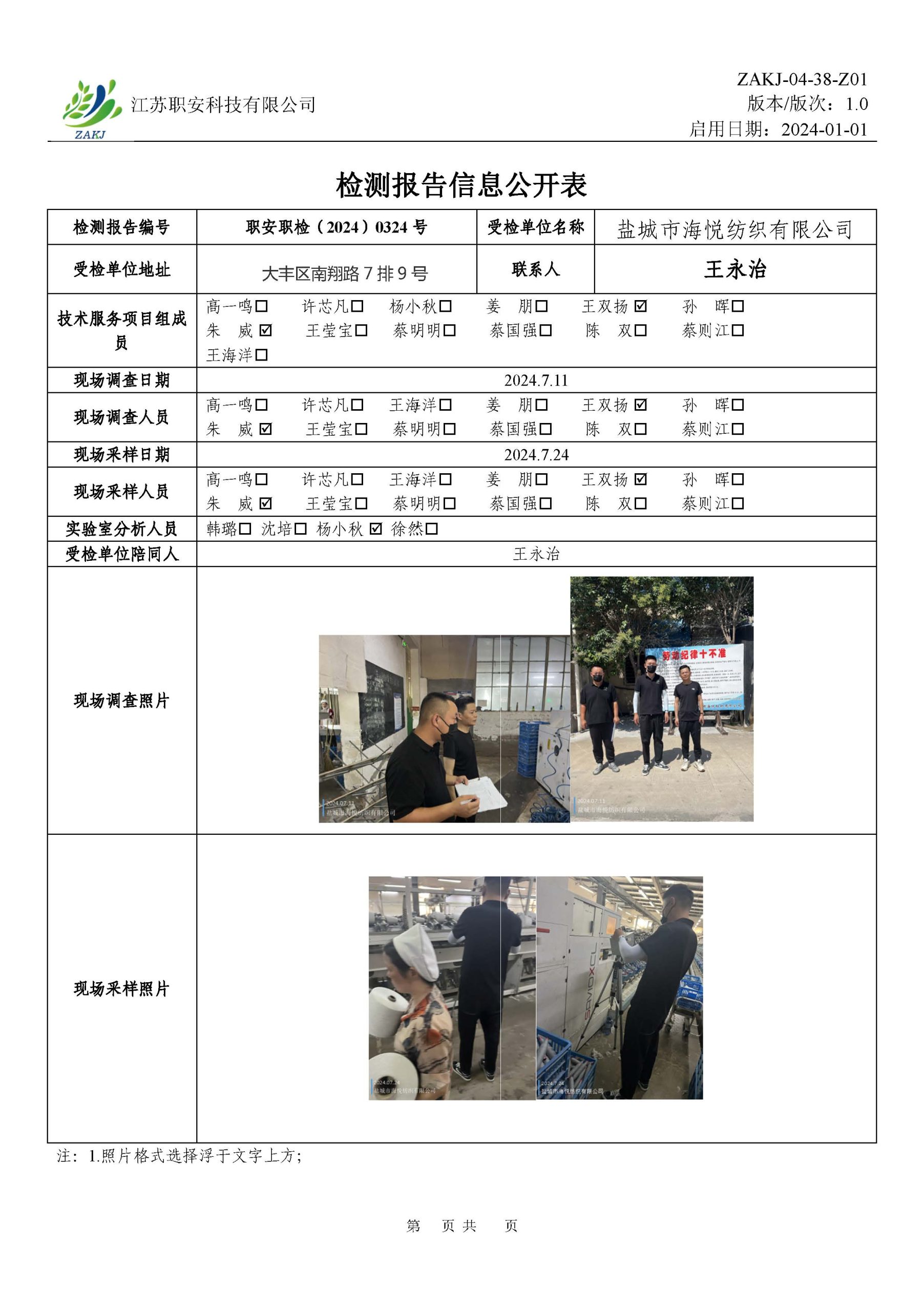 檢測報告公示