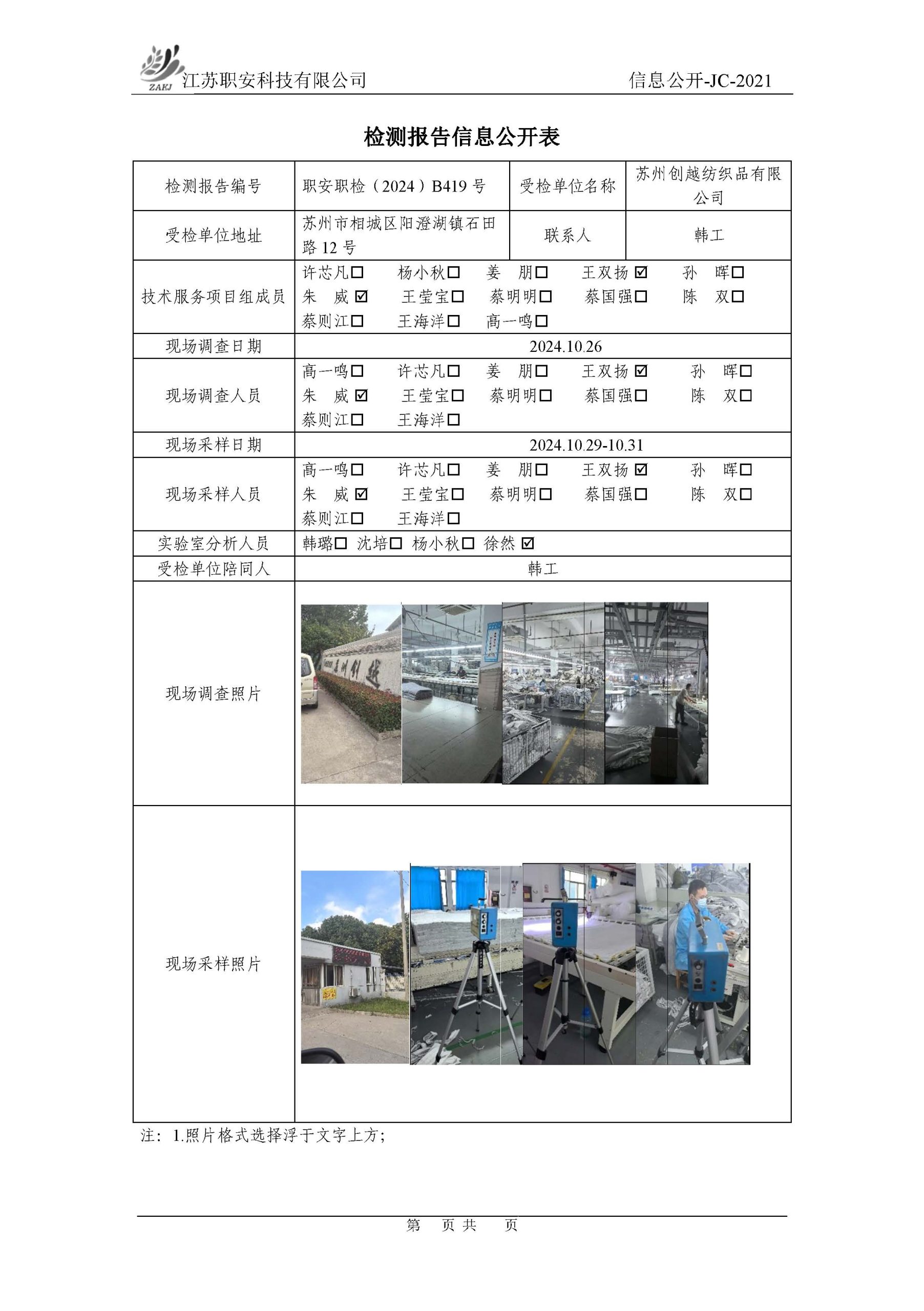 檢測報告公示