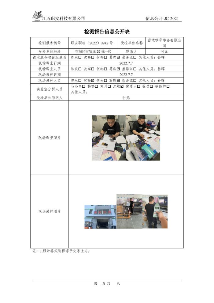 檢測報告公示