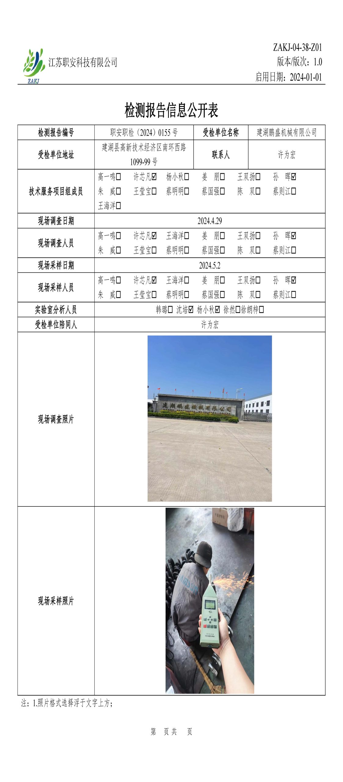 檢測報告公示