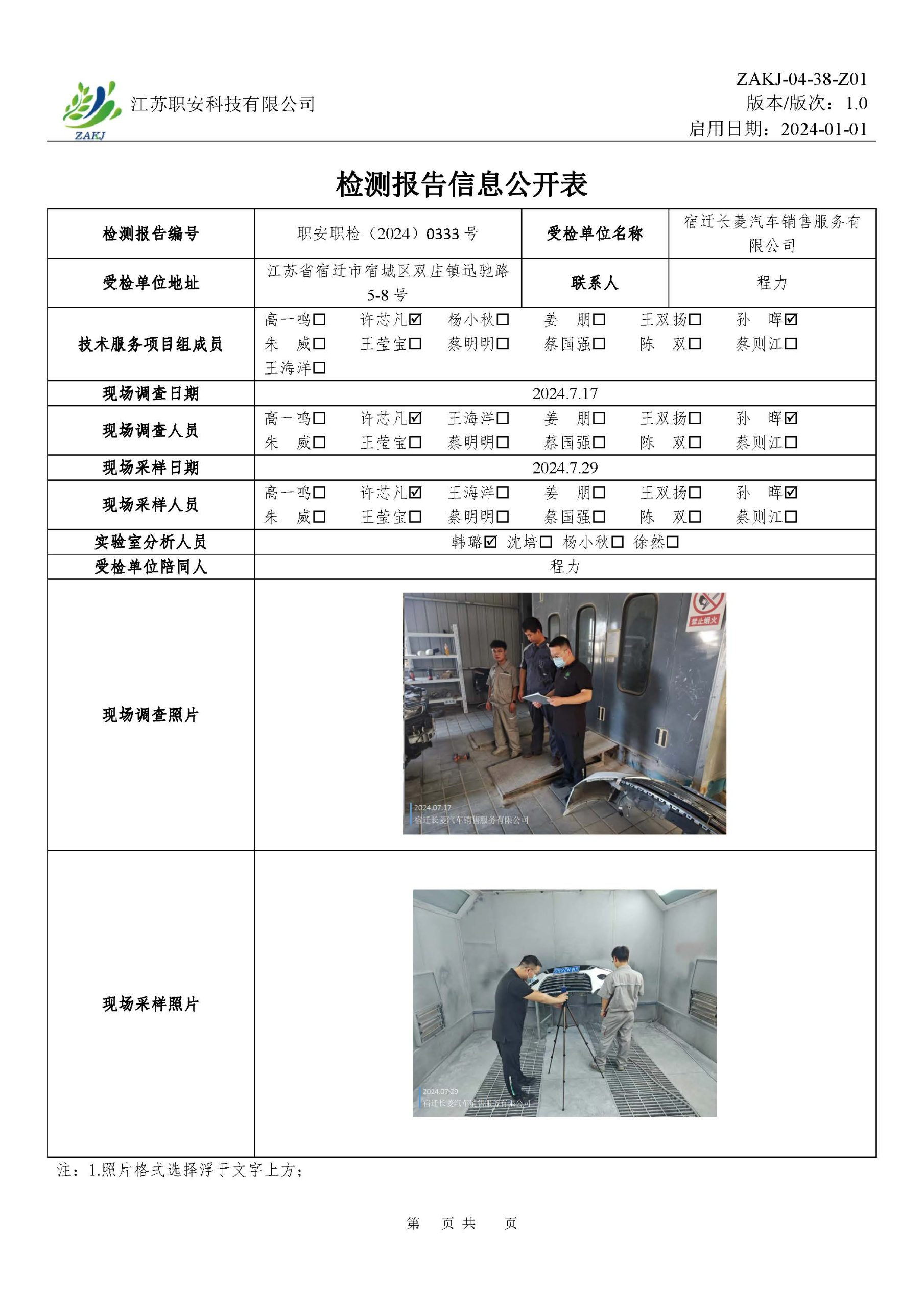 檢測報告公示