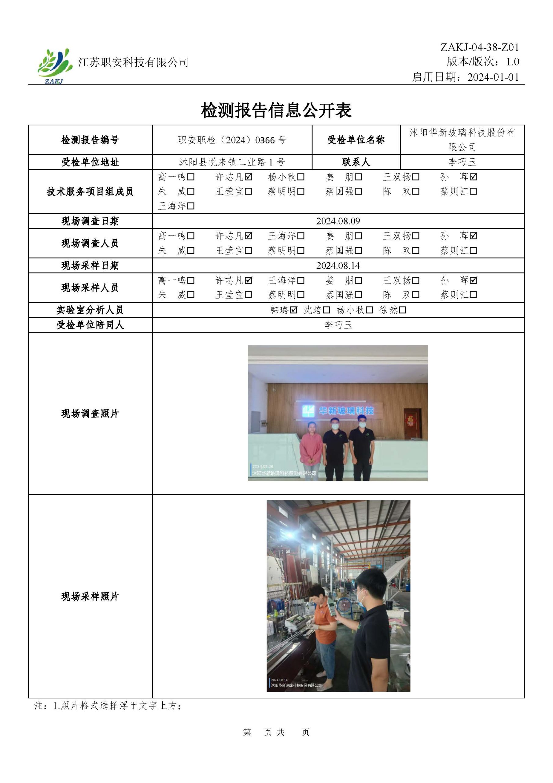 檢測報告公示