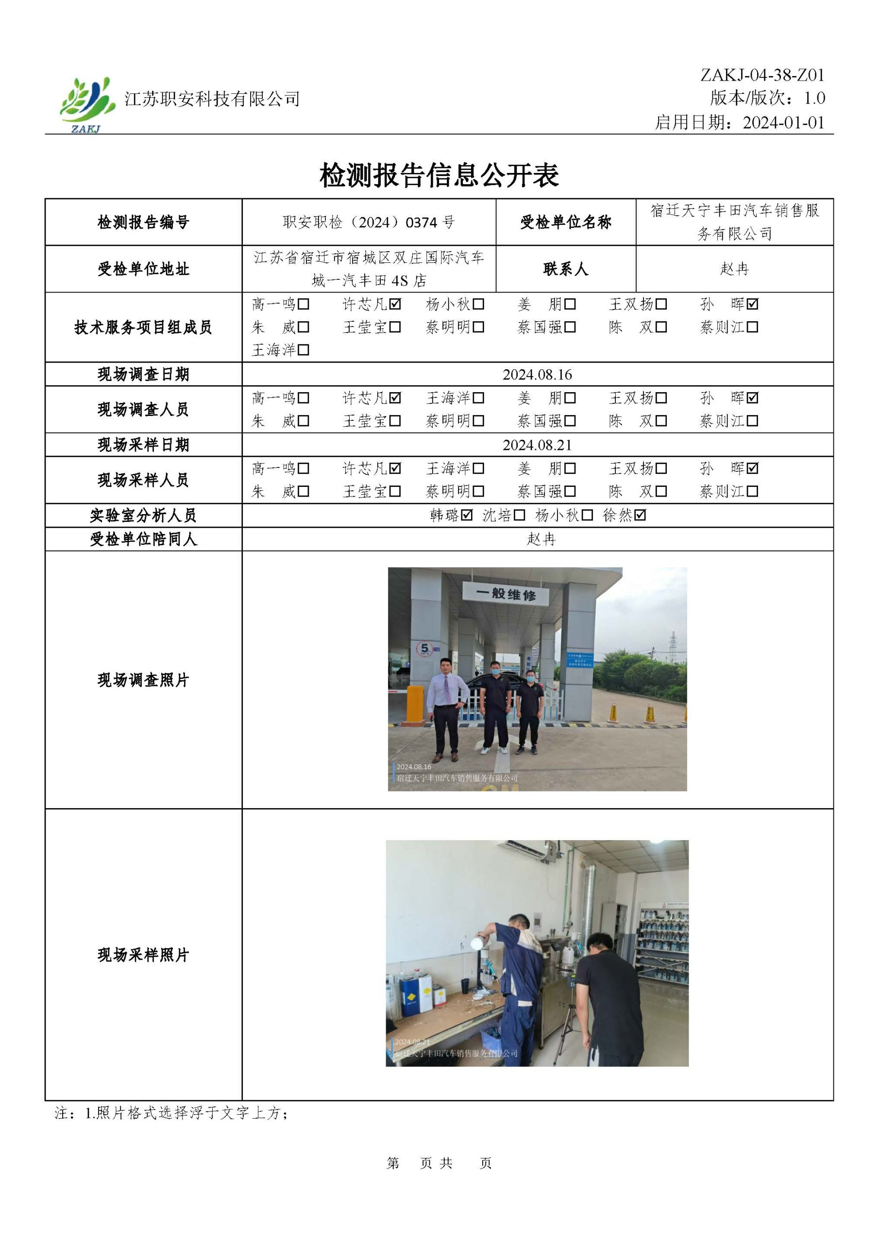檢測報告公示