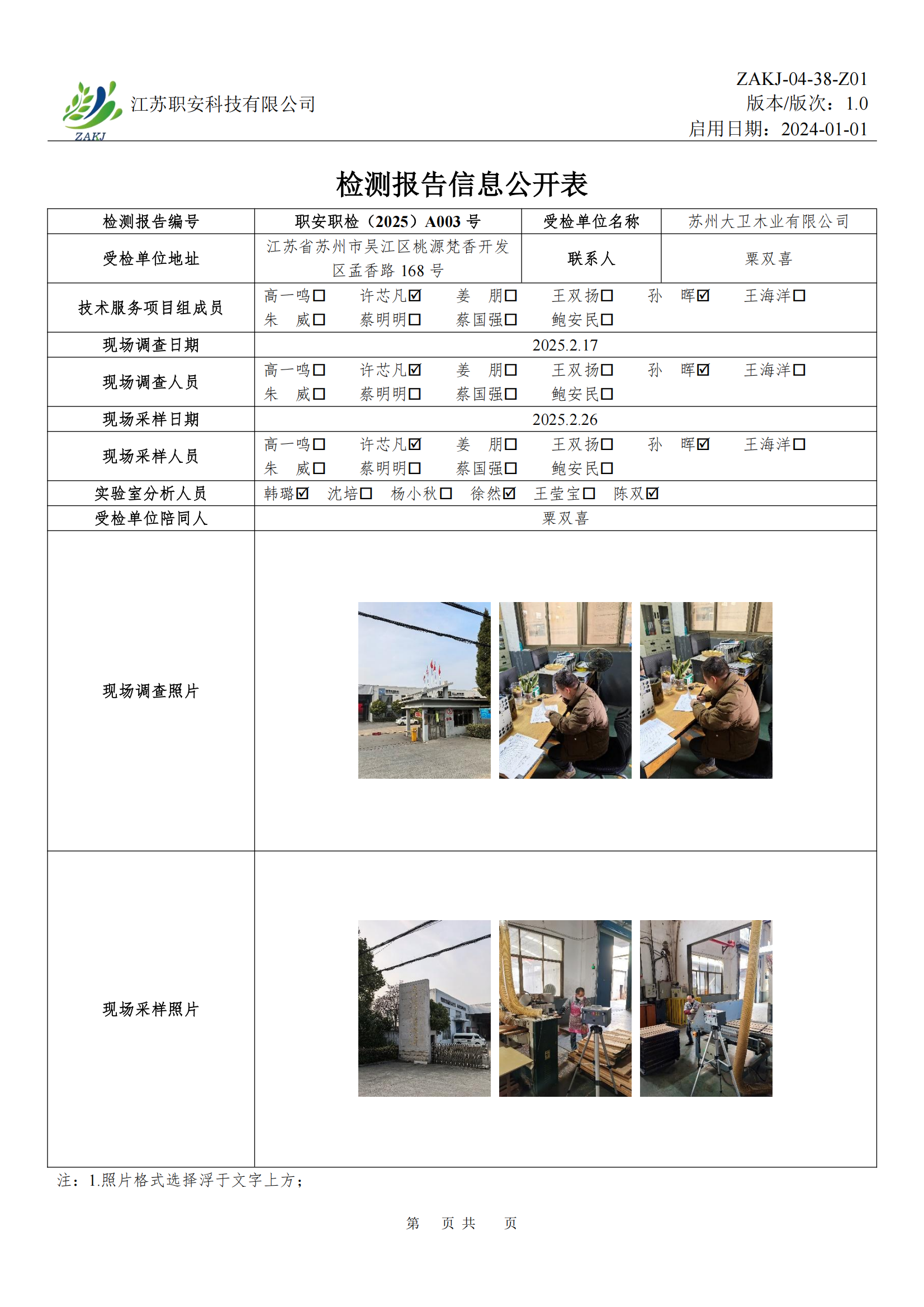 檢測報告公示