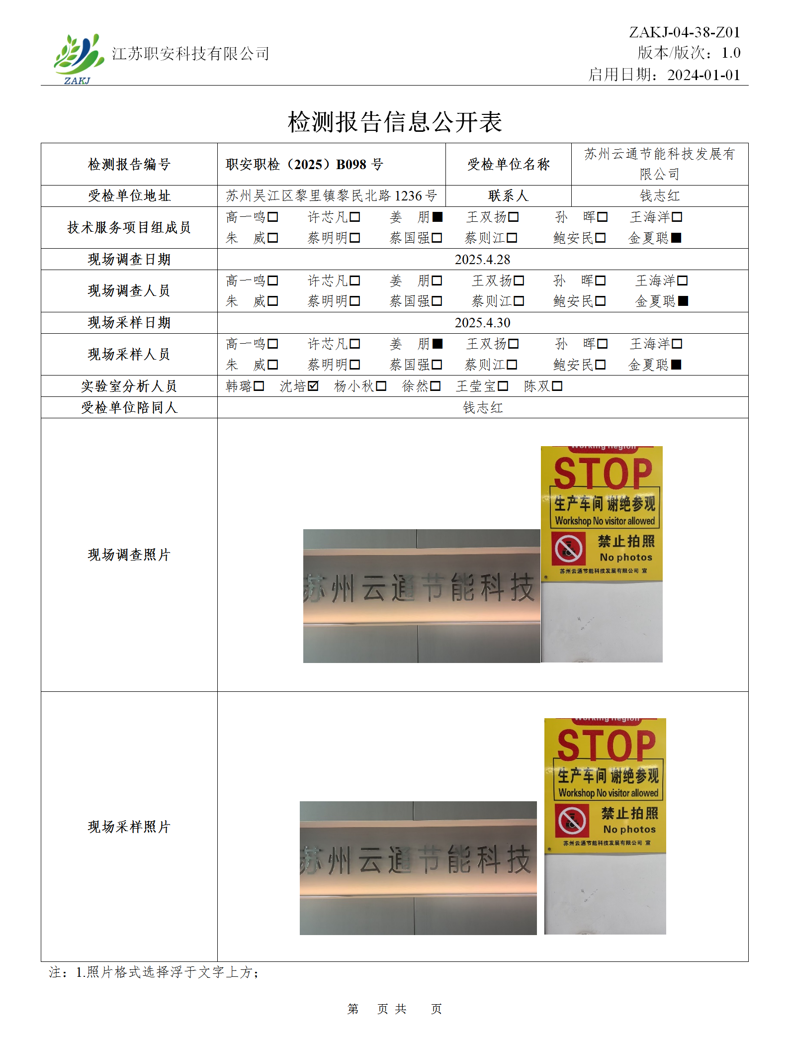 檢測報告公示