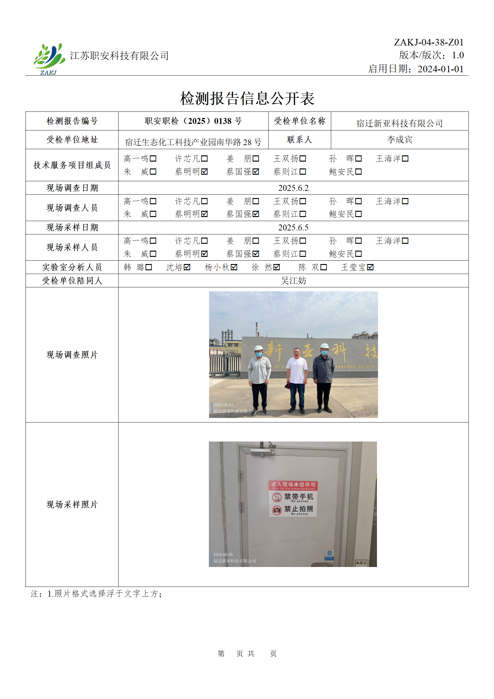 檢測報告公示