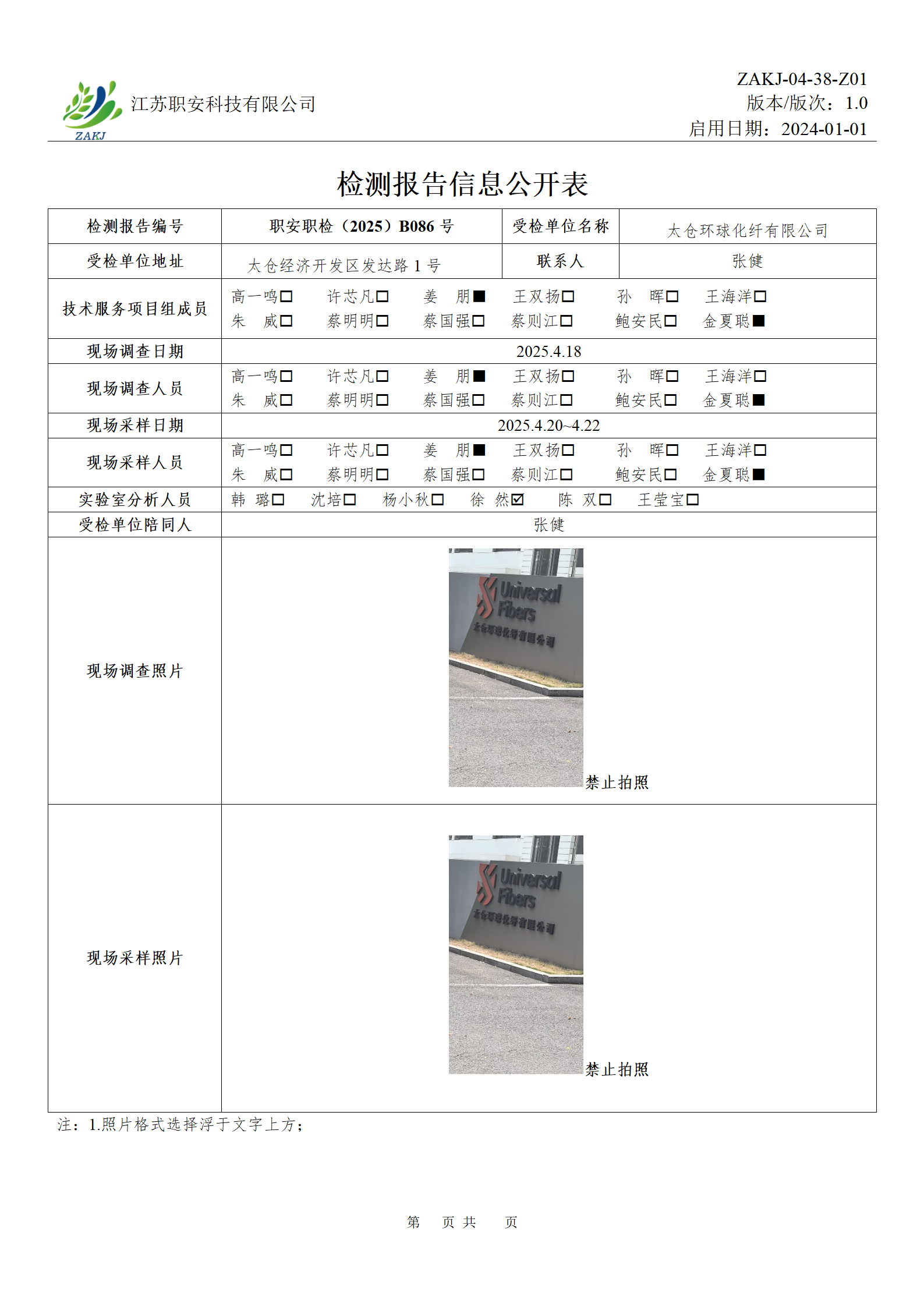 檢測報告公示