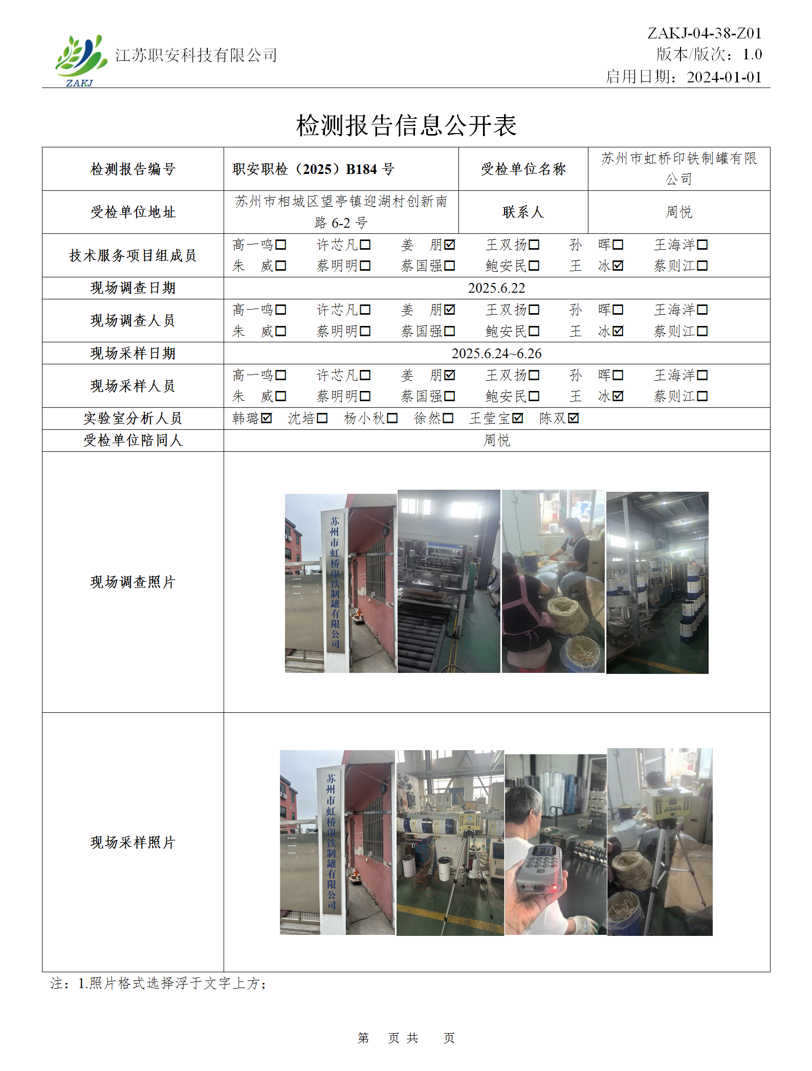 檢測報告公示