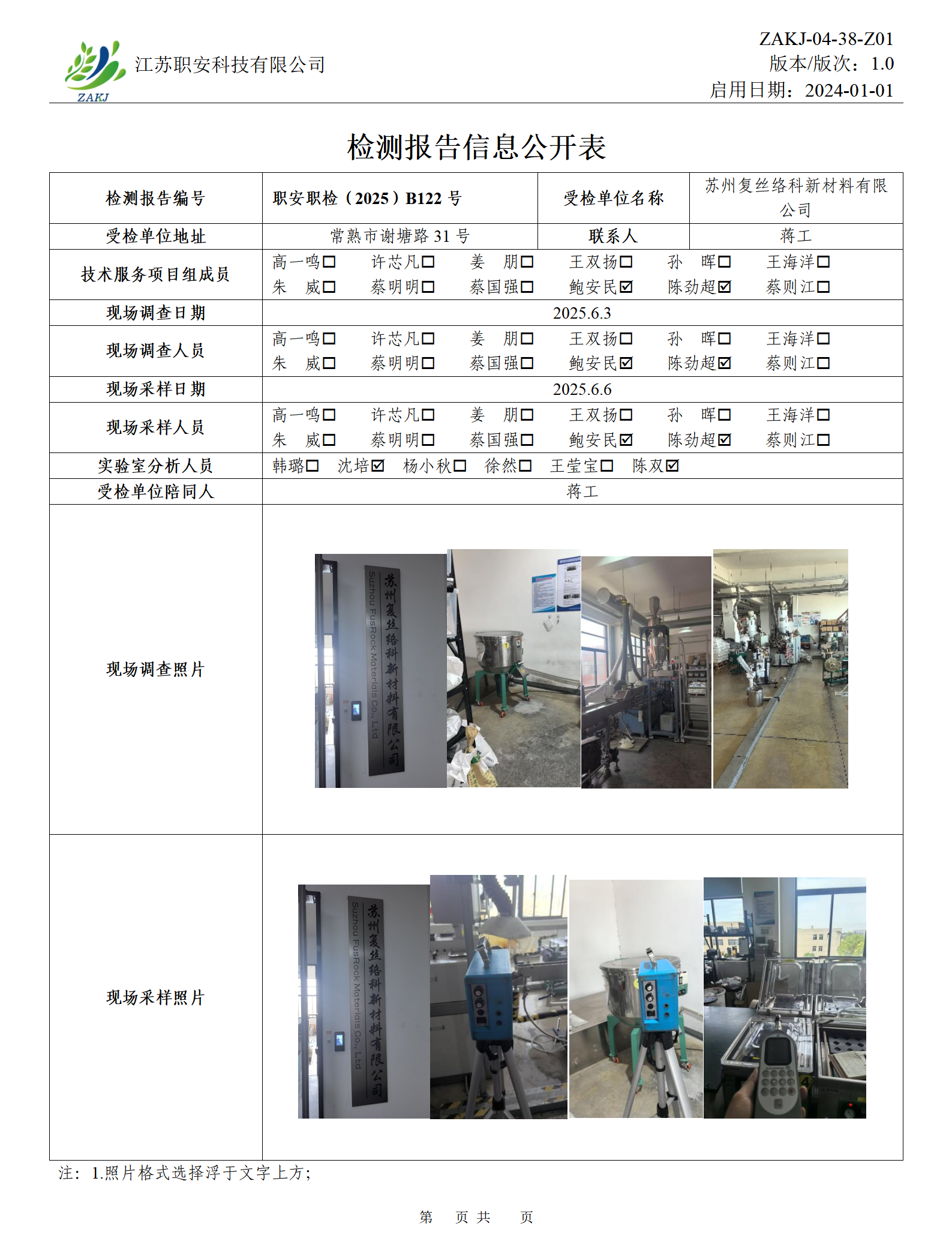 檢測報告公示