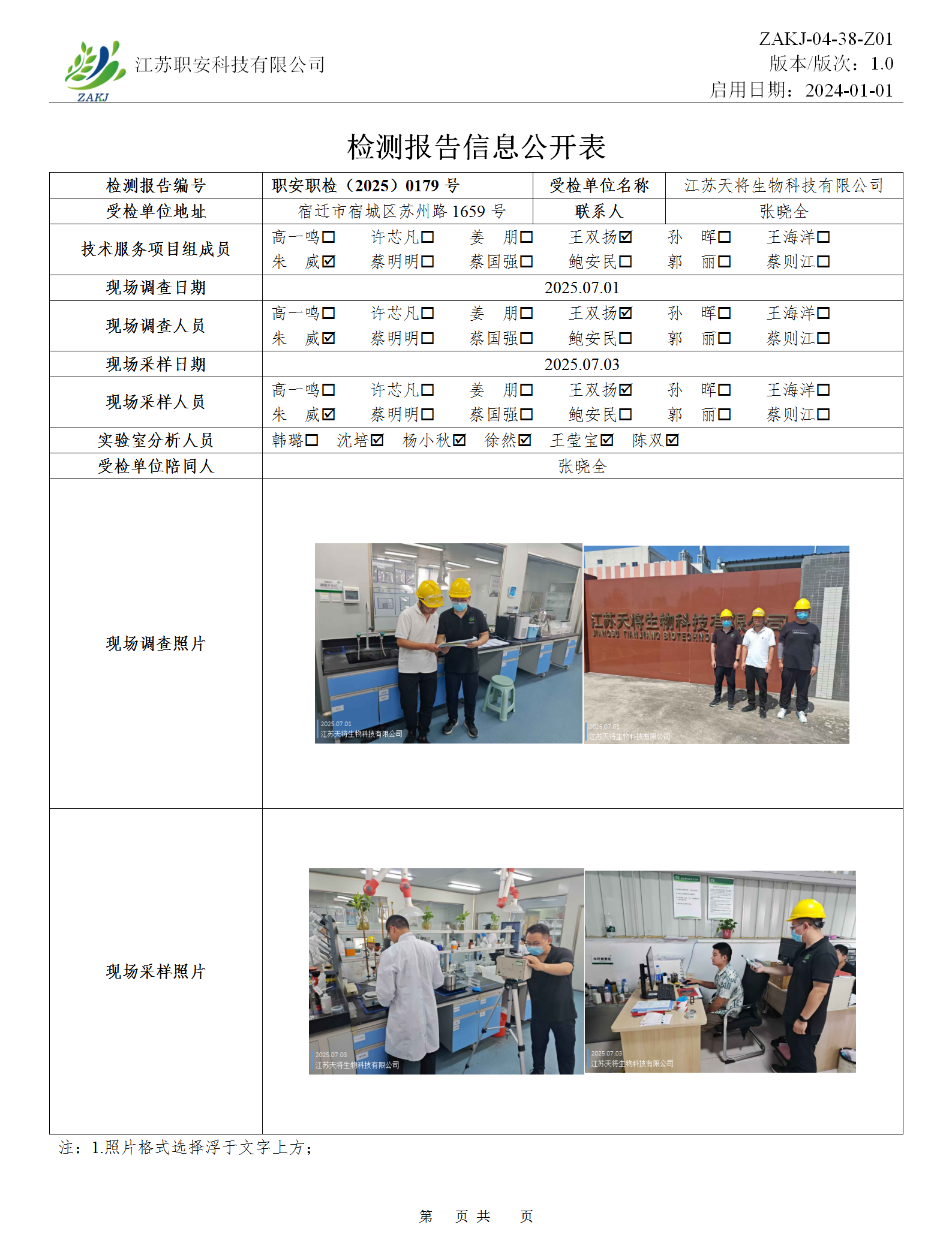 檢測報告公示