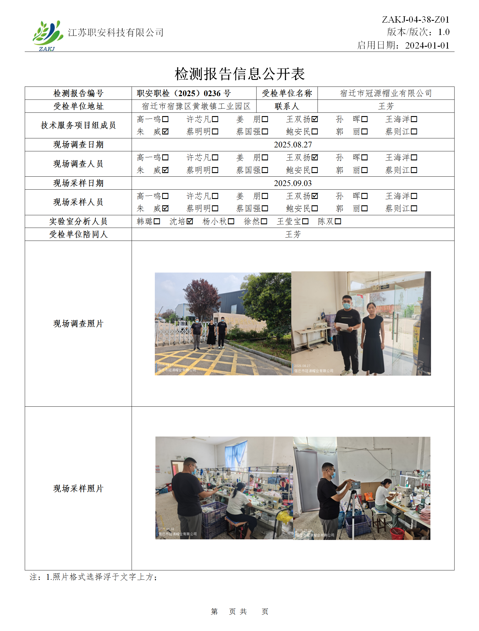 檢測報告公示