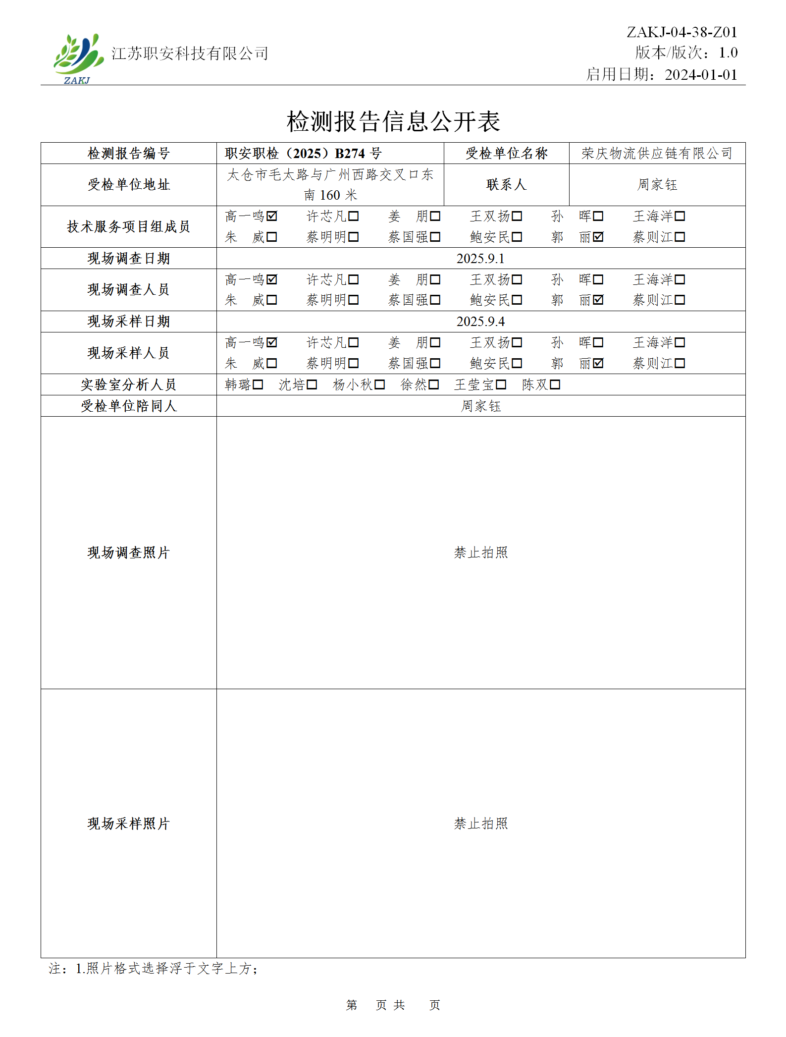 檢測報告公示