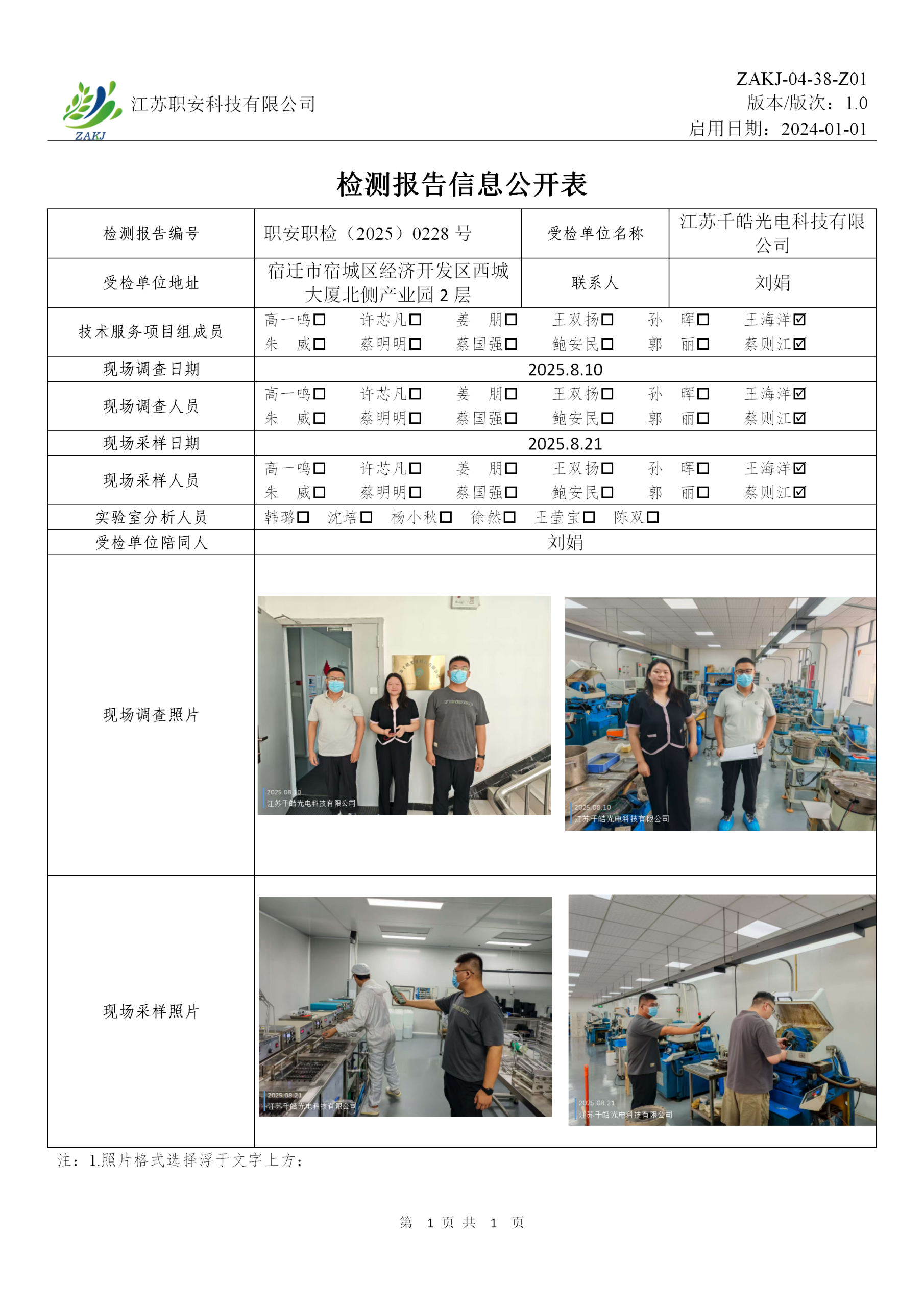 檢測報告公示