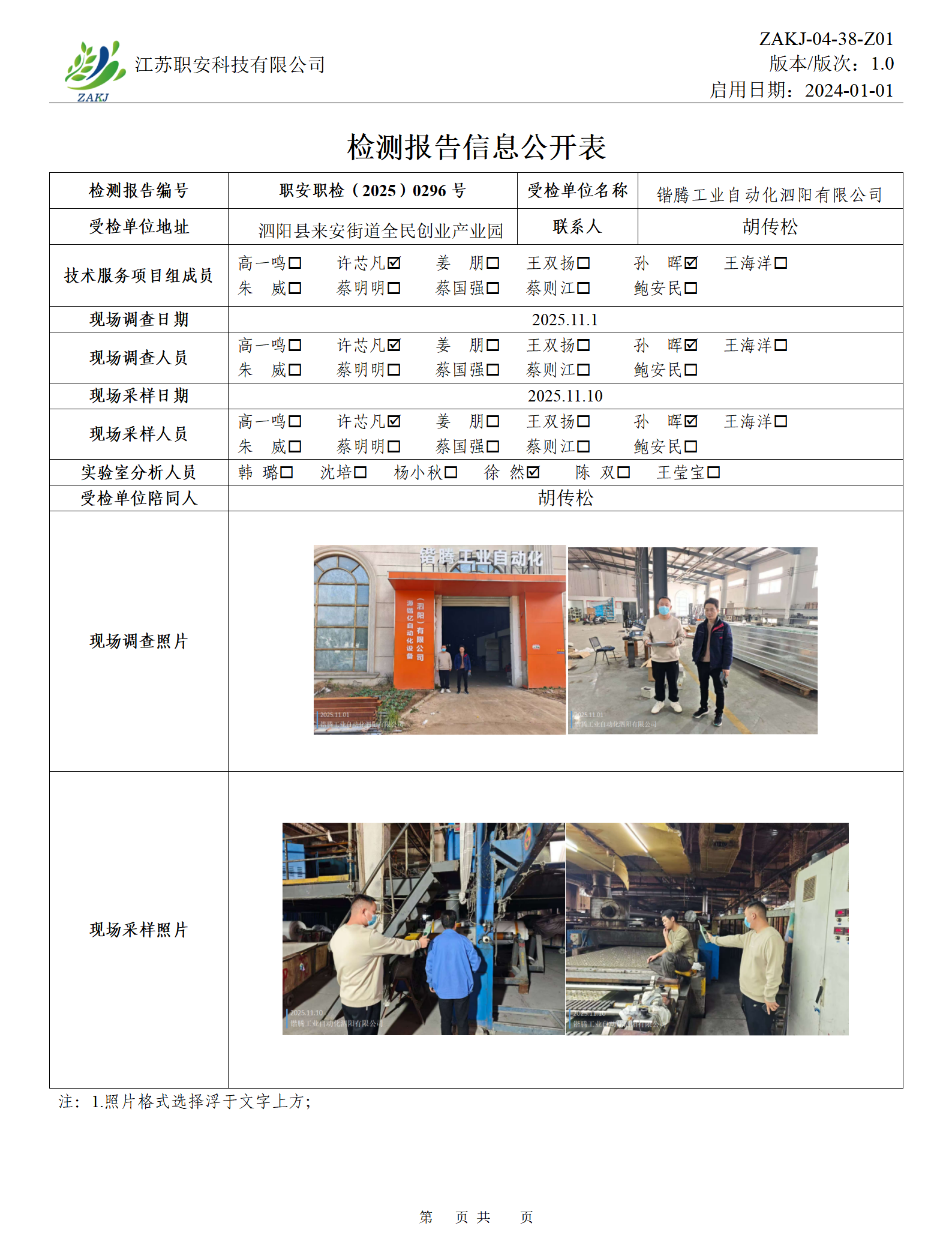 檢測報告公示