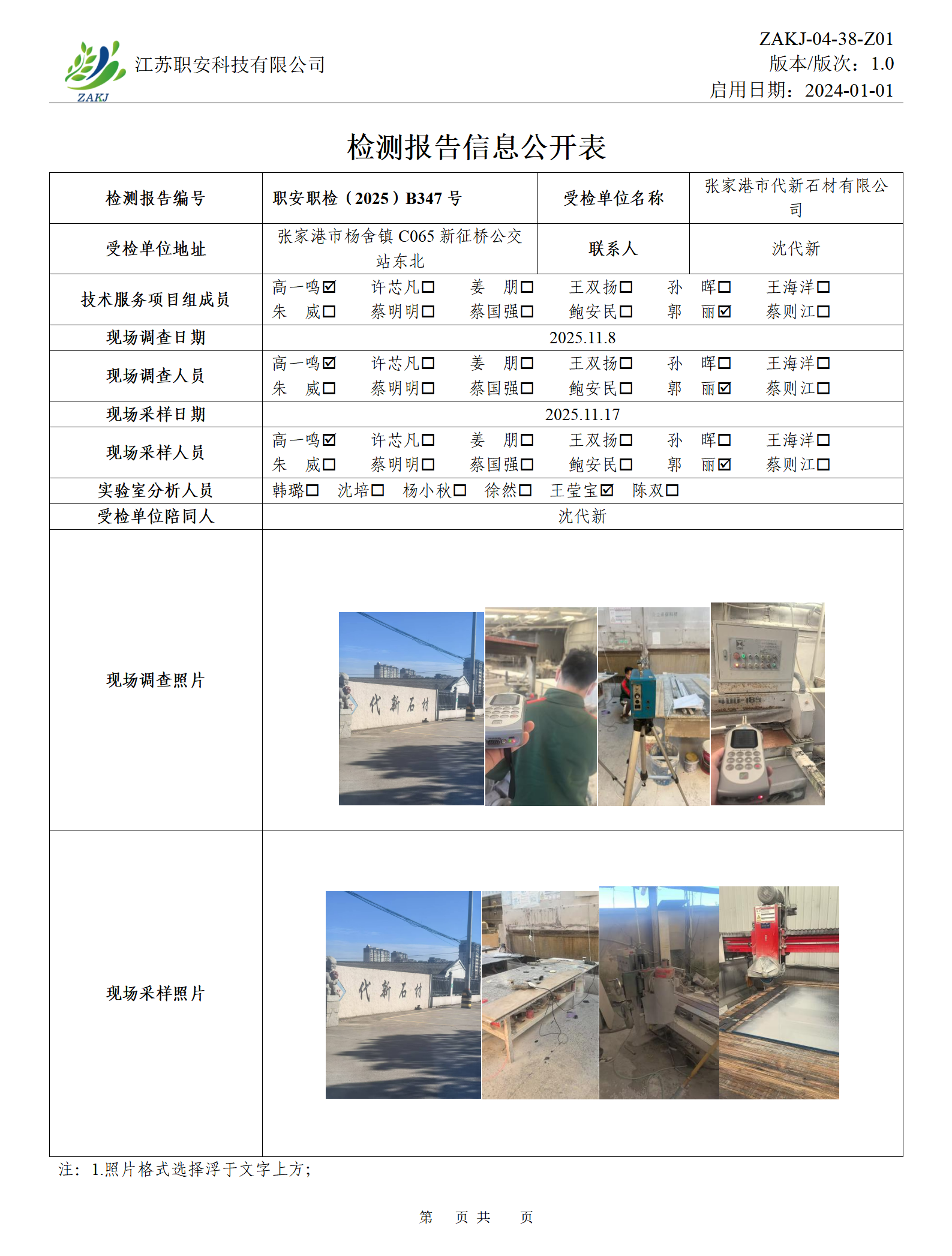 檢測報告公示