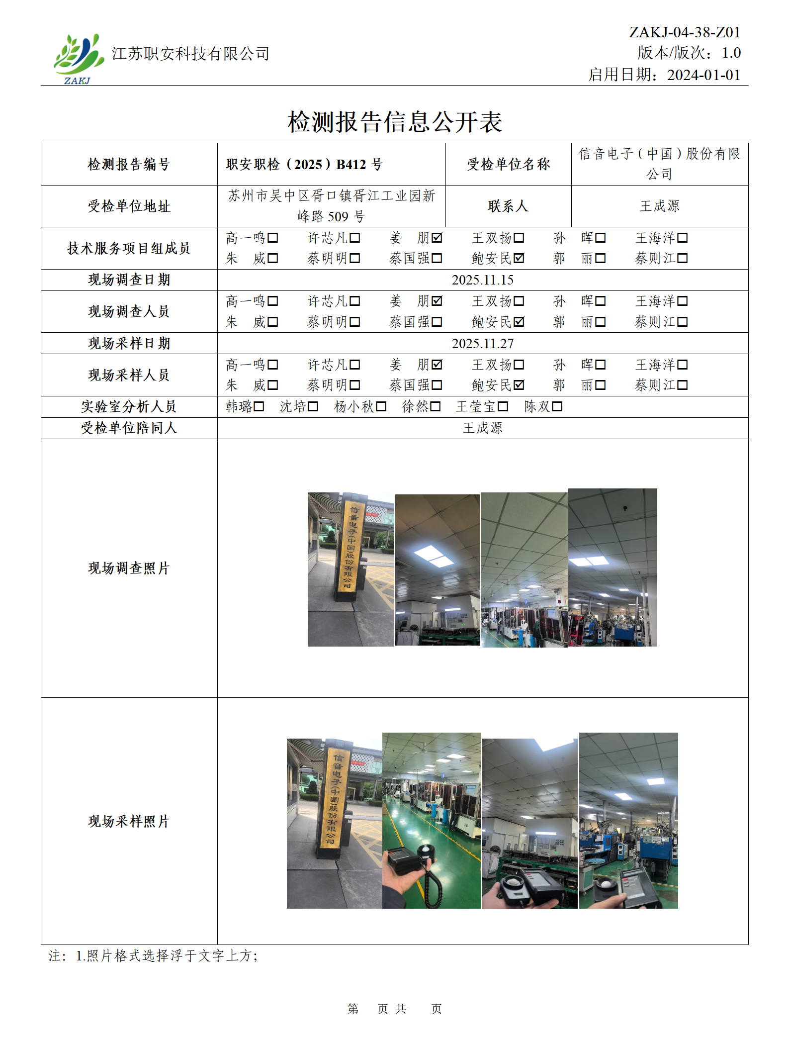 檢測報告公示